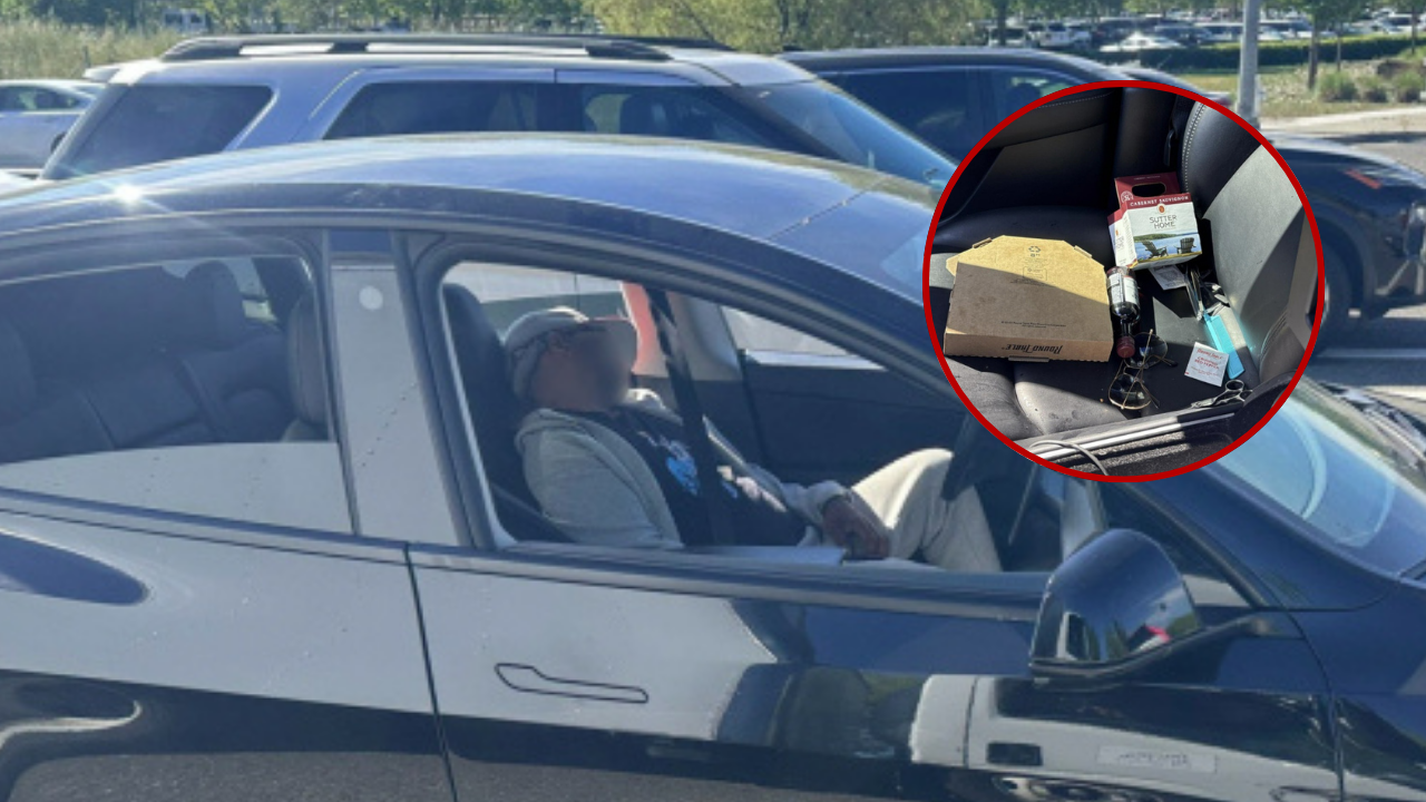 Upon intercepting the vehicle around 11 a.m., police found the man asleep in the driver’s seat while the car operated in autopilot mode, surrounded by a pizza box and a pack of mini wine bottles scattered across the passenger side.