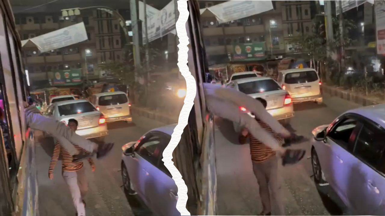 Viral Video Shows Dhaka Commuters Detain Suspected Phone Thief Through Bus Window